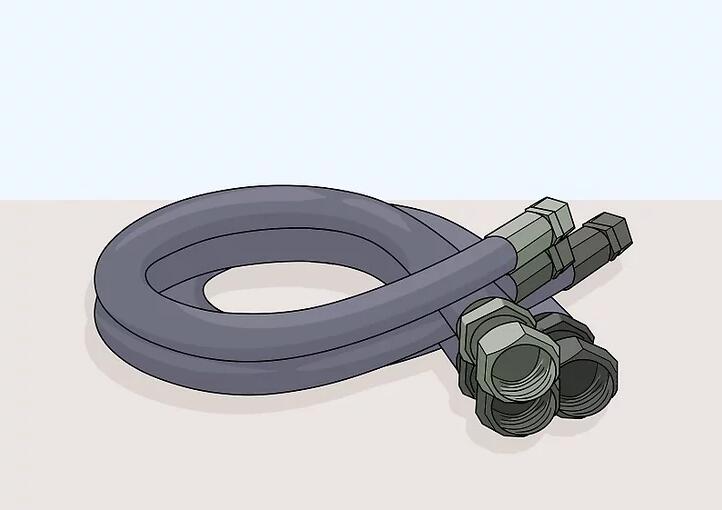 Schrauben Sie die letzte Seite mit zwei Schraubenschlüsseln fest. Die Installation der letzten Seite des Schlauchs ist etwas schwieriger, da sich der Schlauch nicht frei drehen kann. Stecken Sie den Schlauch in den Anschluss. Halten Sie es dann mit einem Schraubenschlüssel fest. Drehen Sie den an der Maschine befestigten Stecker mit einem zweiten Schraubenschlüssel. Hören Sie auf zu drehen, wenn sich der Stecker nicht weiter dreht.