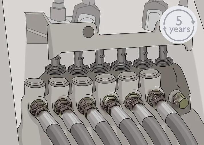 Auch wenn ein Hydraulikschlauch nicht oft genutzt wurde, ersetzen Sie ihn nach 10 Jahren. Gummi verschlechtert sich mit der Zeit und der Schlauch könnte altersbedingt platzen.