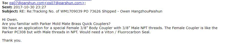 Dieser Kunde ist ein großer Lieferant von Hydraulik- und Pneumatikteilen. Sie fordern bei uns Schnellwechsler an.