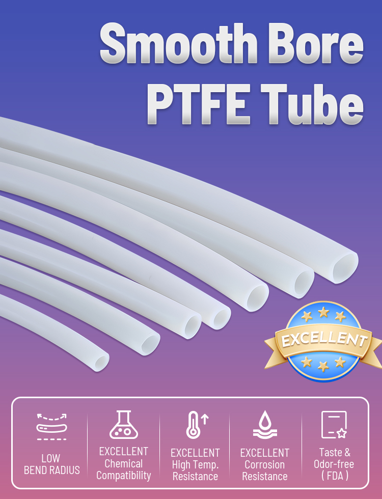 PTFE-Schläuche (Polytetrafluorethylen) mit glatter Bohrung sind flexible Schläuche aus einem Fluorpolymermaterial, das für seine außergewöhnlichen Eigenschaften bekannt ist.